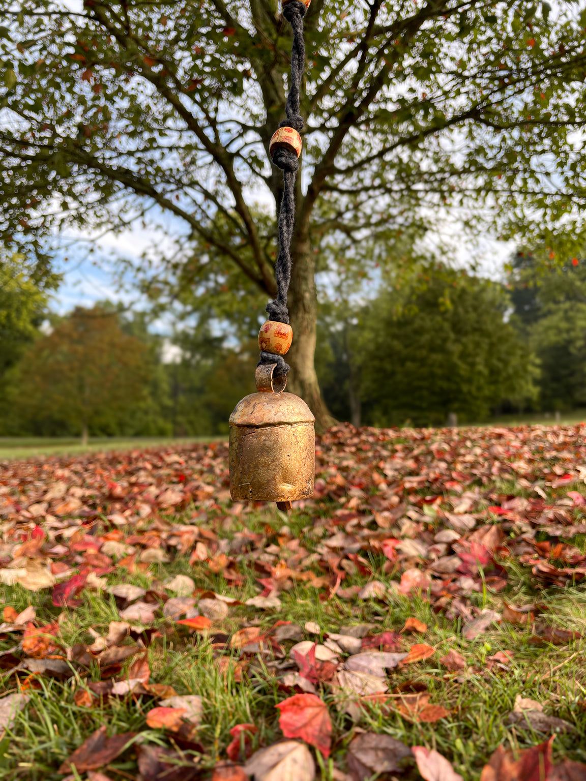 Our copper-coated bells made from up-cycled metal are a charming and sustainable decorative piece. Each bell is coated with a warm copper finish, adding a rustic elegance, and they are strung on black thread, accented with wooden beads. The soft, melodic sounds produced by the bells create a soothing ambiance, making this eco-friendly decoration perfect for hanging in gardens, doorways, or as a unique accent in your home. Its earthy materials and design bring a natural, calming touch to any space.